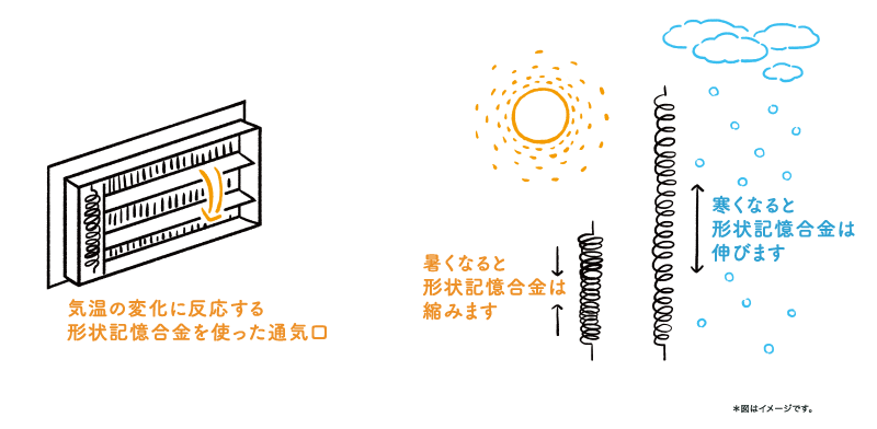 • 形状記憶合金を使った通気口が温度で自動開閉
