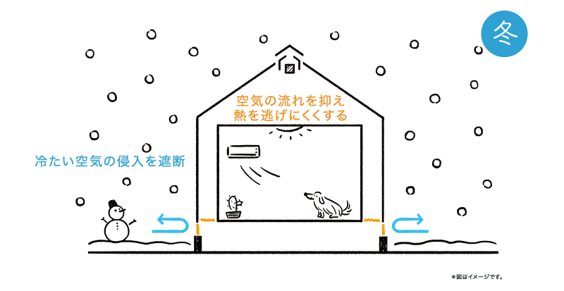 冬は通気口が閉じて断熱性が高まるため、冷気が入りにくくなります。