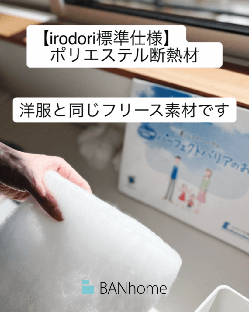 今回は、バンホームの住宅シリーズ「irodori」標準仕様のポリエステル断熱材(パーフェクトバリア)をご紹介します。