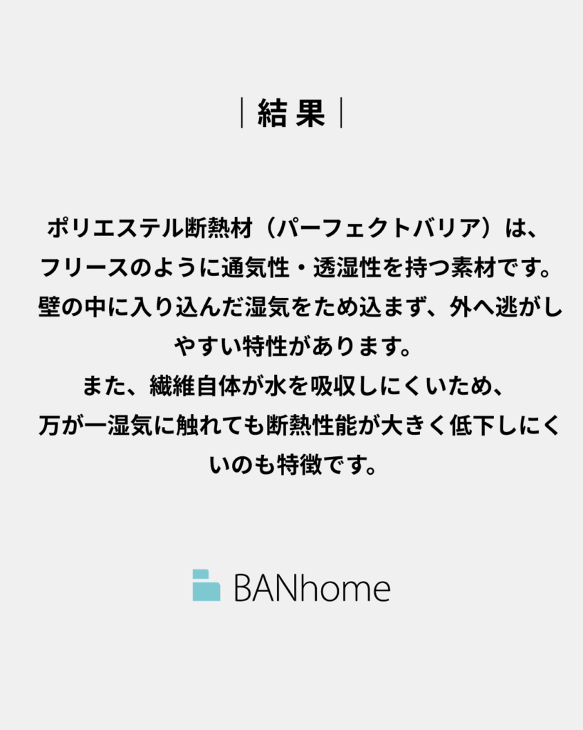 「壁の中の環境」により目を向け、ポリエステル断熱材(パーフェクトバリア)を採用しています。