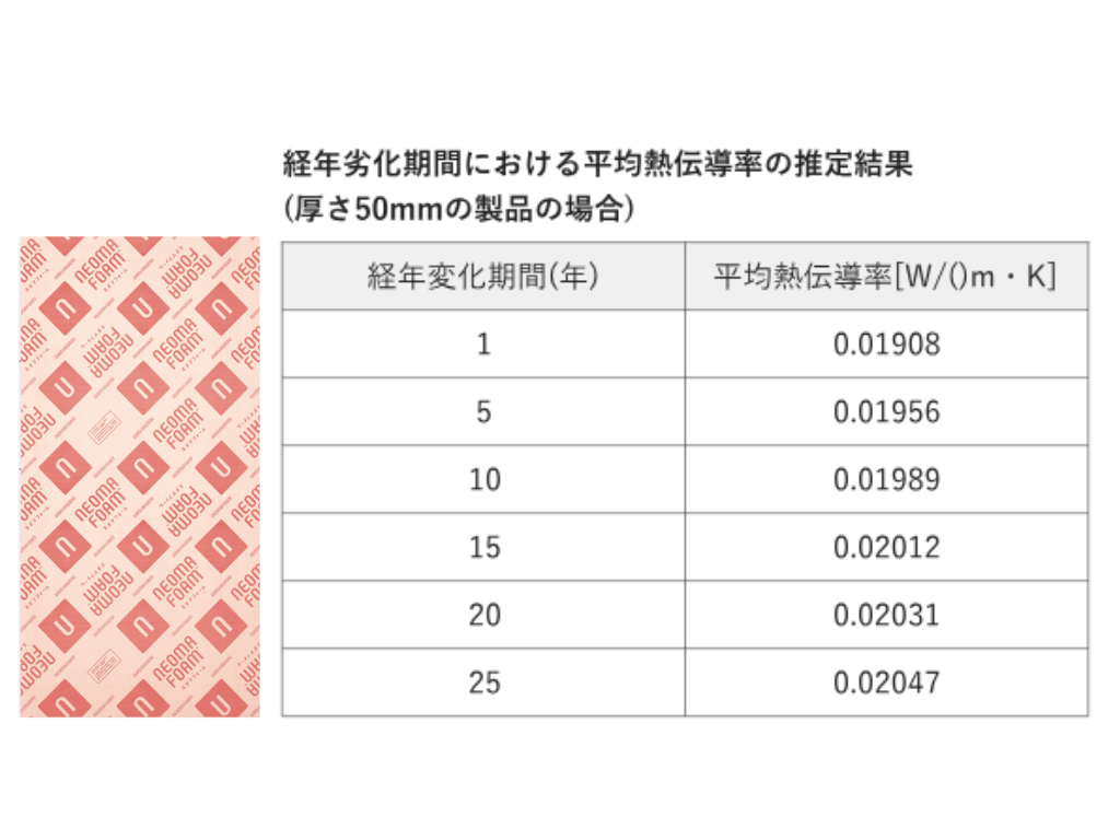 25年間の平均断熱性能が、トップクラスの0.020W/(m・K)。