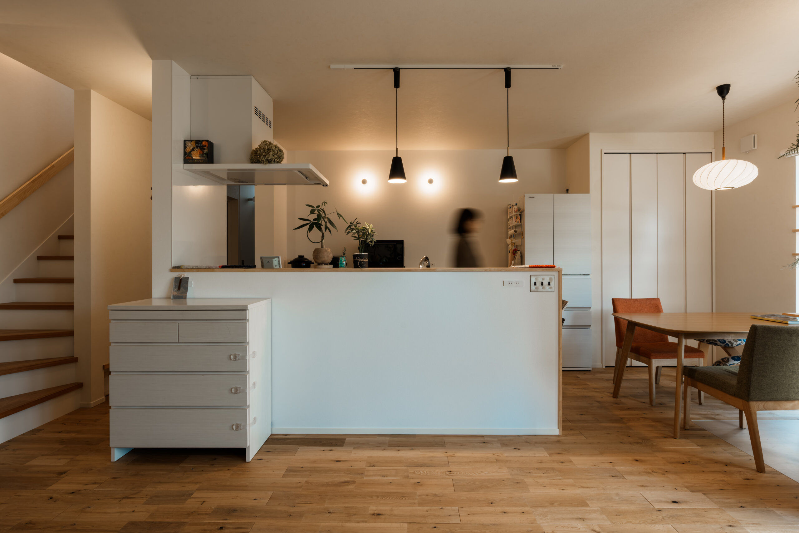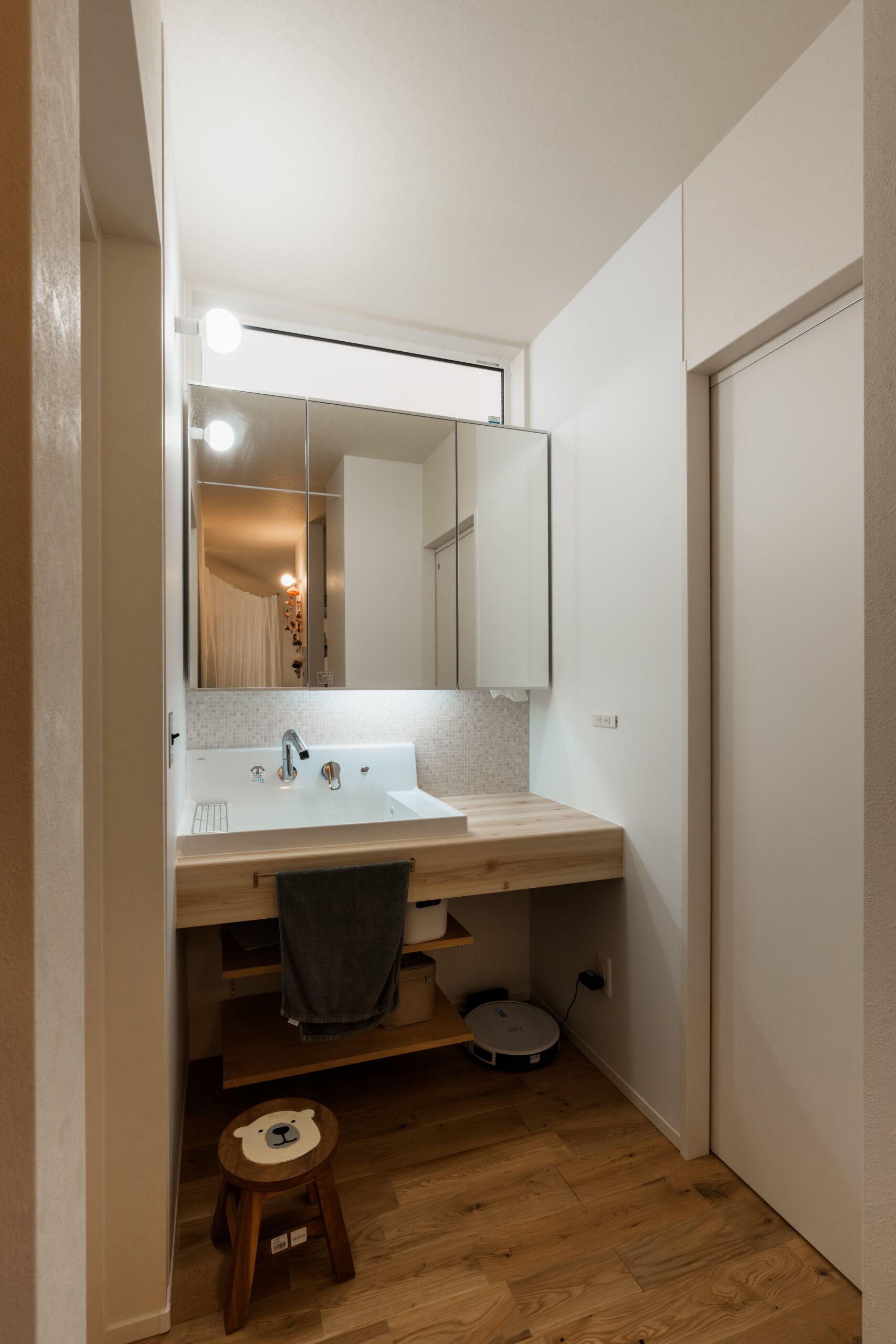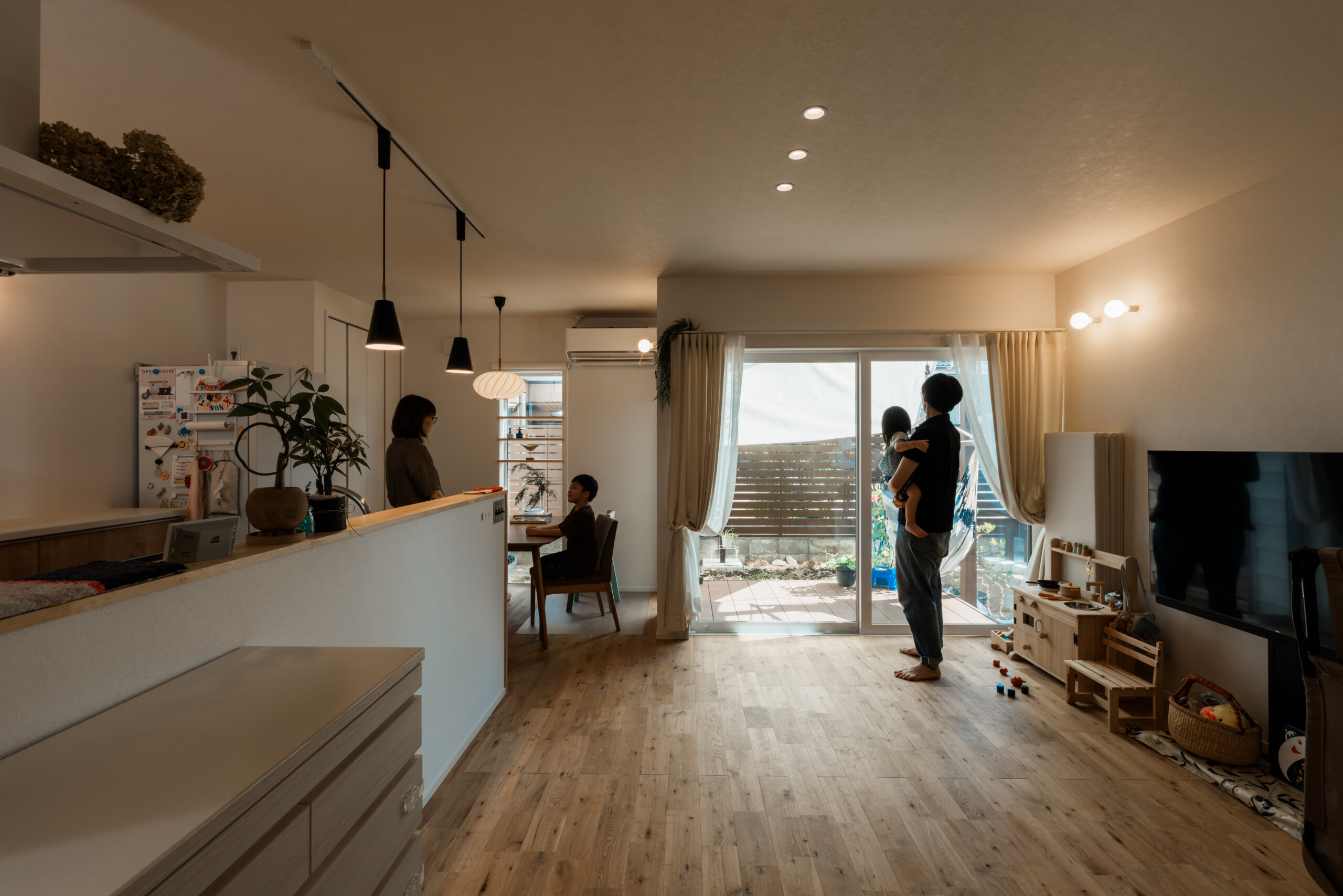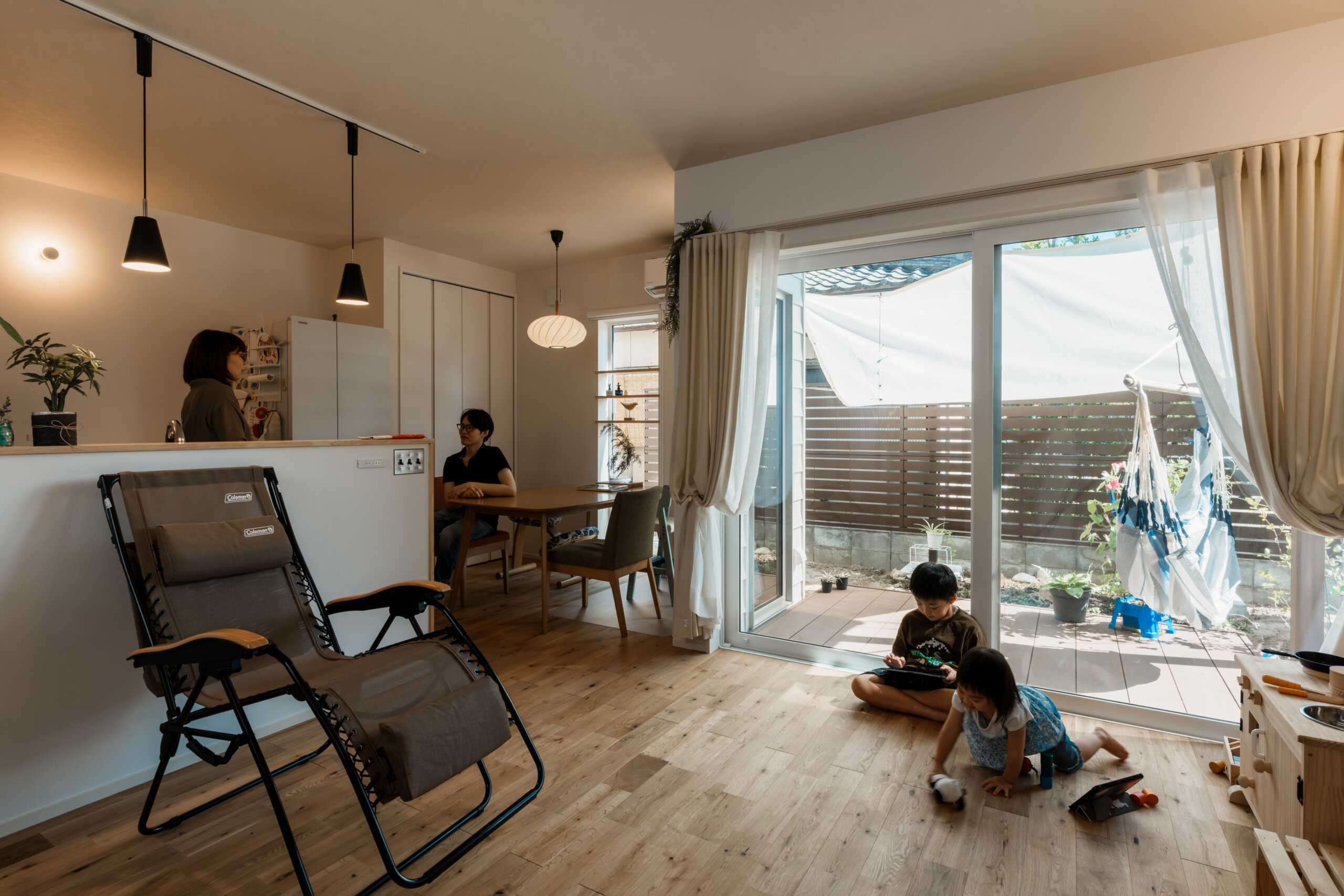 2025.12.29 光集い心和む、木々清々の家。 リビングの奥には隣地の視線を避けて設けたデッキスペース 軒下のハンモックで寛げる 階段下を利用したこもれるヌック 広めのサニタリースペースは造作カウンターや収納棚、物干しバーを設置。造作カウンターは、上部に衣類乾燥機”乾太くん”、下部には収納ケースがフィットするように使いやすい高さに設計 LDKの中心にキッチンを配置。調理をしながらでも子ども達に目が届く リビングの先にデッキがフラットに繋がることで広がりを感じる 脱衣室とトイレに隣接して設えた広めの造作洗面台 前の記事へ 記事一覧に戻る